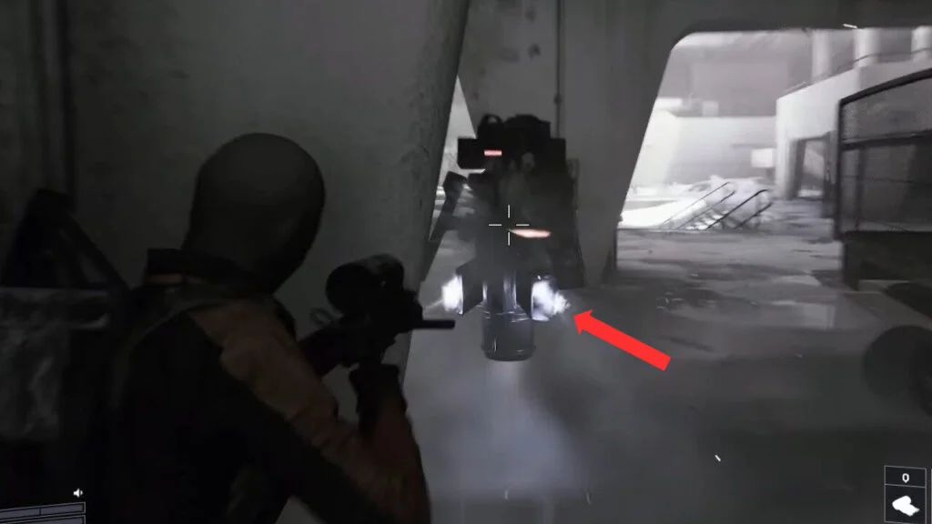 Dans un couloir, reculez jusqu’à un point où vous avez un angle ou un objet large comme une caisse, un véhicule, ou un renfoncement. Ensuite, jouez le “peek” : vous sortez, vous tirez, puis vous rentrez immédiatement au moment où la lueur rouge apparaît.